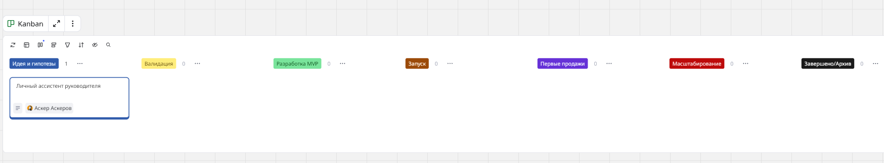 Наша канбан-доска - именно такая. Она показывает путь стартапа от первой мысли до масштабирования. Без иллюзий. Без абстракций. По фактам.